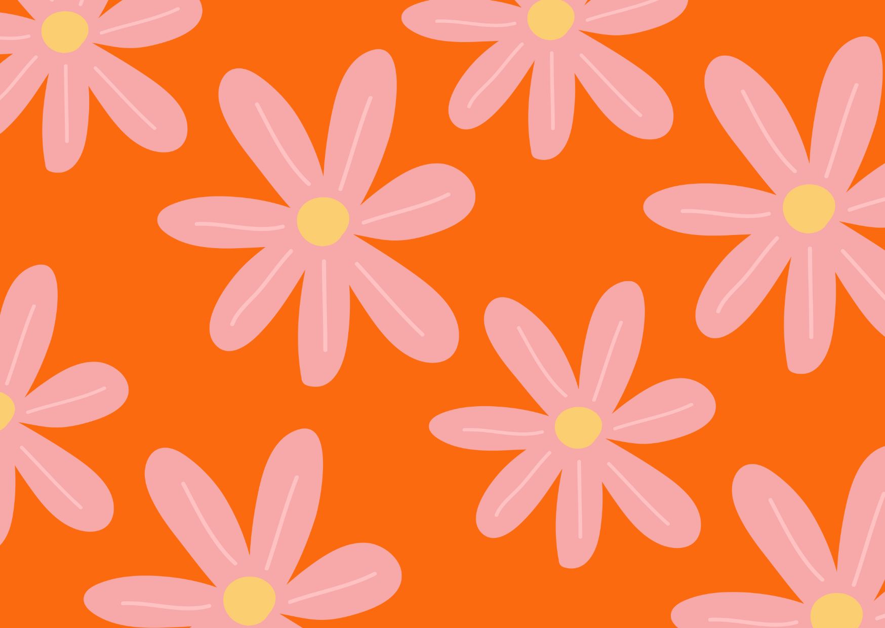 Laat de zon schijnen met deze opvallende oranje kaart vol grote, vrolijke roze margrieten. Zonder tekst, zodat jij jouw eigen warme en kleurrijke boodschap kunt schrijven. Perfect om iemand een zonnige groet te sturen.