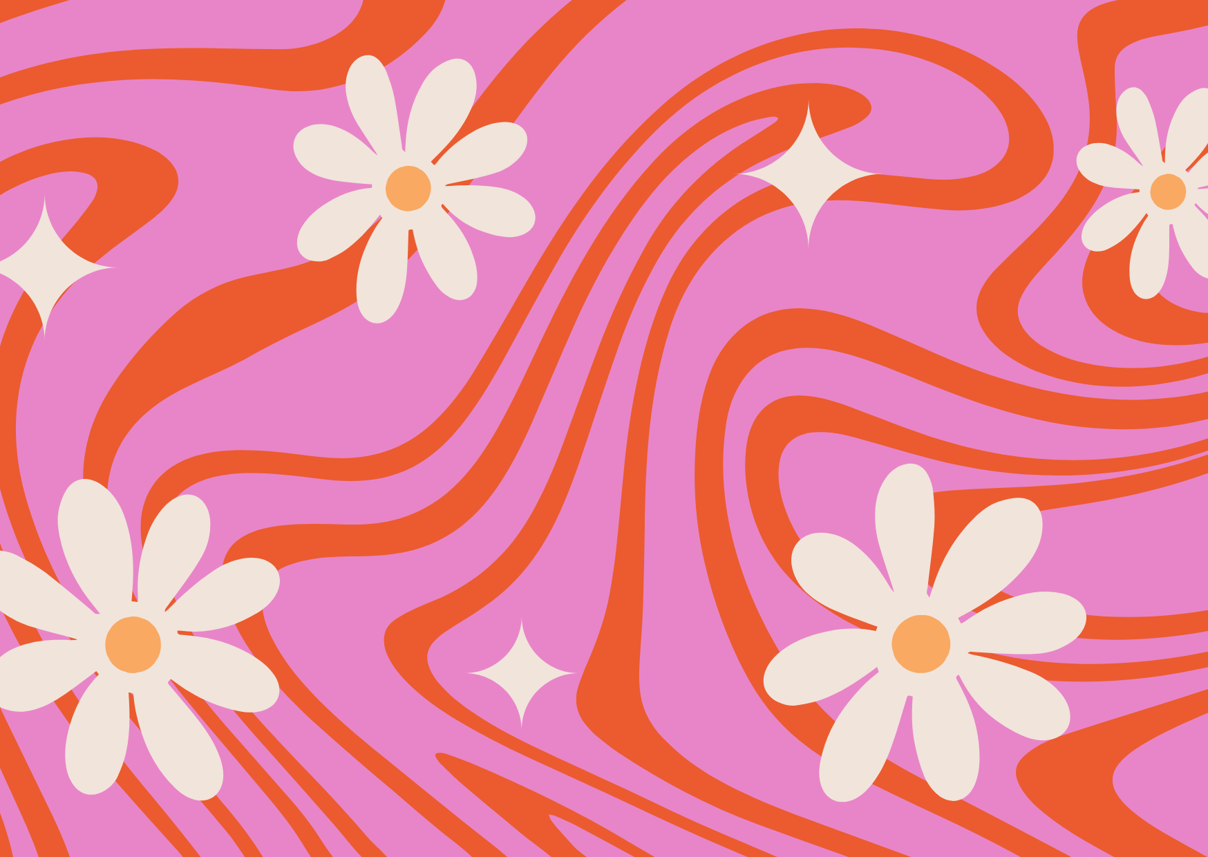 Een kleurrijke kaart met strepen, bloemen en sterren. Zonder tekst, zodat jij jouw eigen lentegevoel kunt delen.