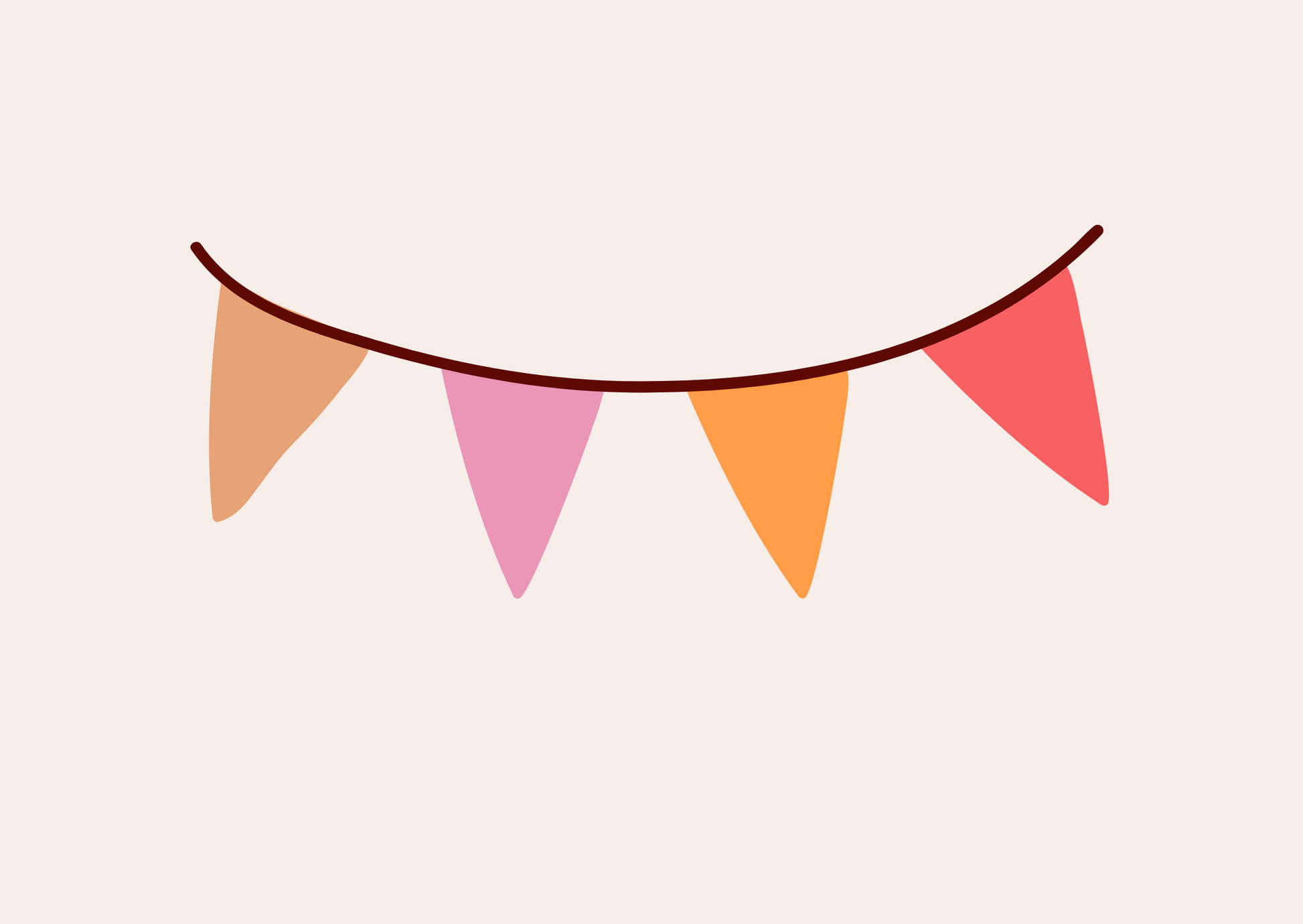 Kleurrijke slingers, simpel en vrolijk โ deze kaart brengt meteen de feeststemming. Perfect om iemand uit te nodigen of te verrassen op een speciale dag!